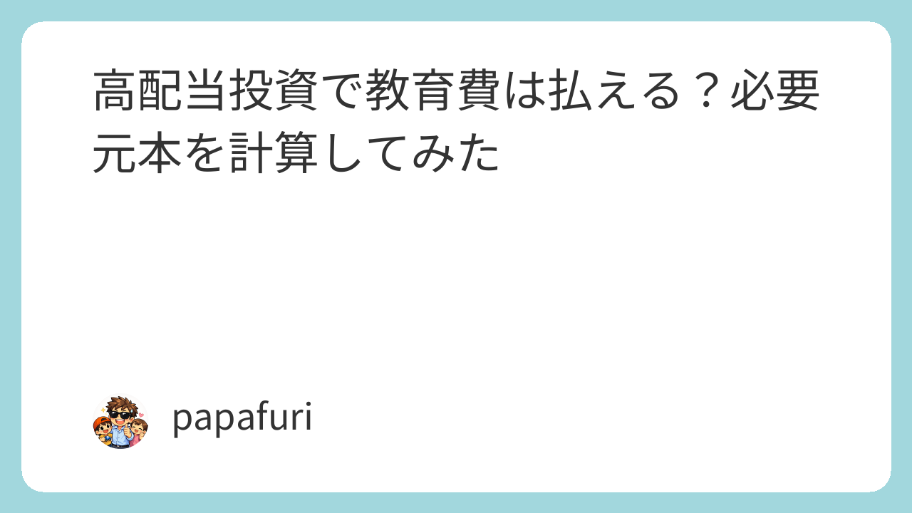 「配当だけで教育費を払えたら理想だけど、本当に可能なのか?」